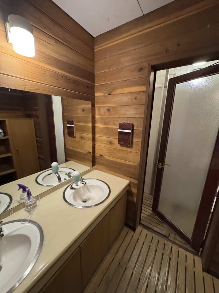 トレーラーロッジ内にはお風呂がないため、入浴は管理棟内の浴場(森の露天風呂)を利用します。